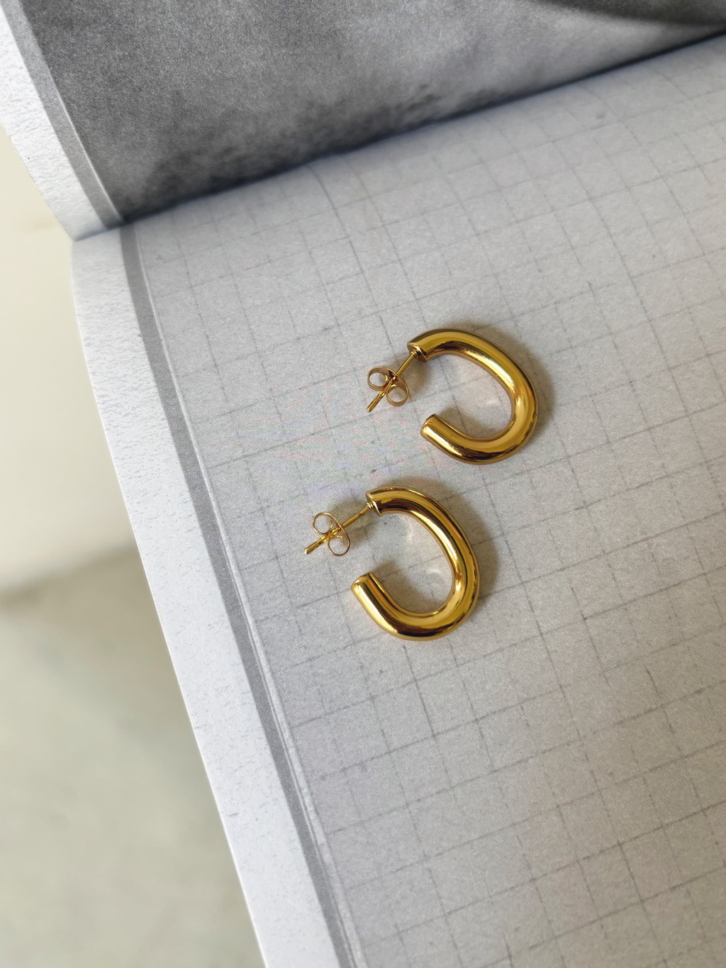 Brinco em aço inoxidável, com banho dourado.