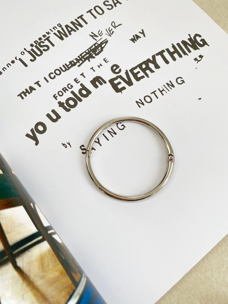 Bracelete prateado, liso em Zamac com banho de verniz. (6x6 cm- abertura máxima do bracelete de 4 cm)