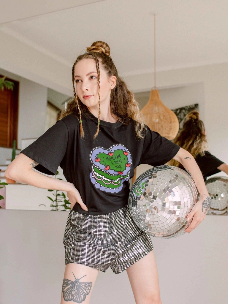 Camiseta em malha, 100% algodão, com estampa em serigrafia e modelagem ampla (unissex).