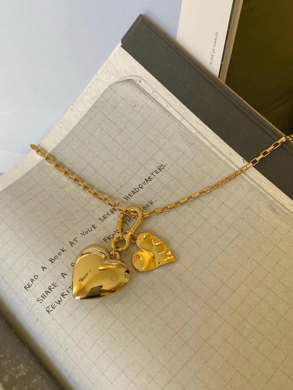 Colar e pingentes dourados de corações em zamac com banho de verniz - 43cm