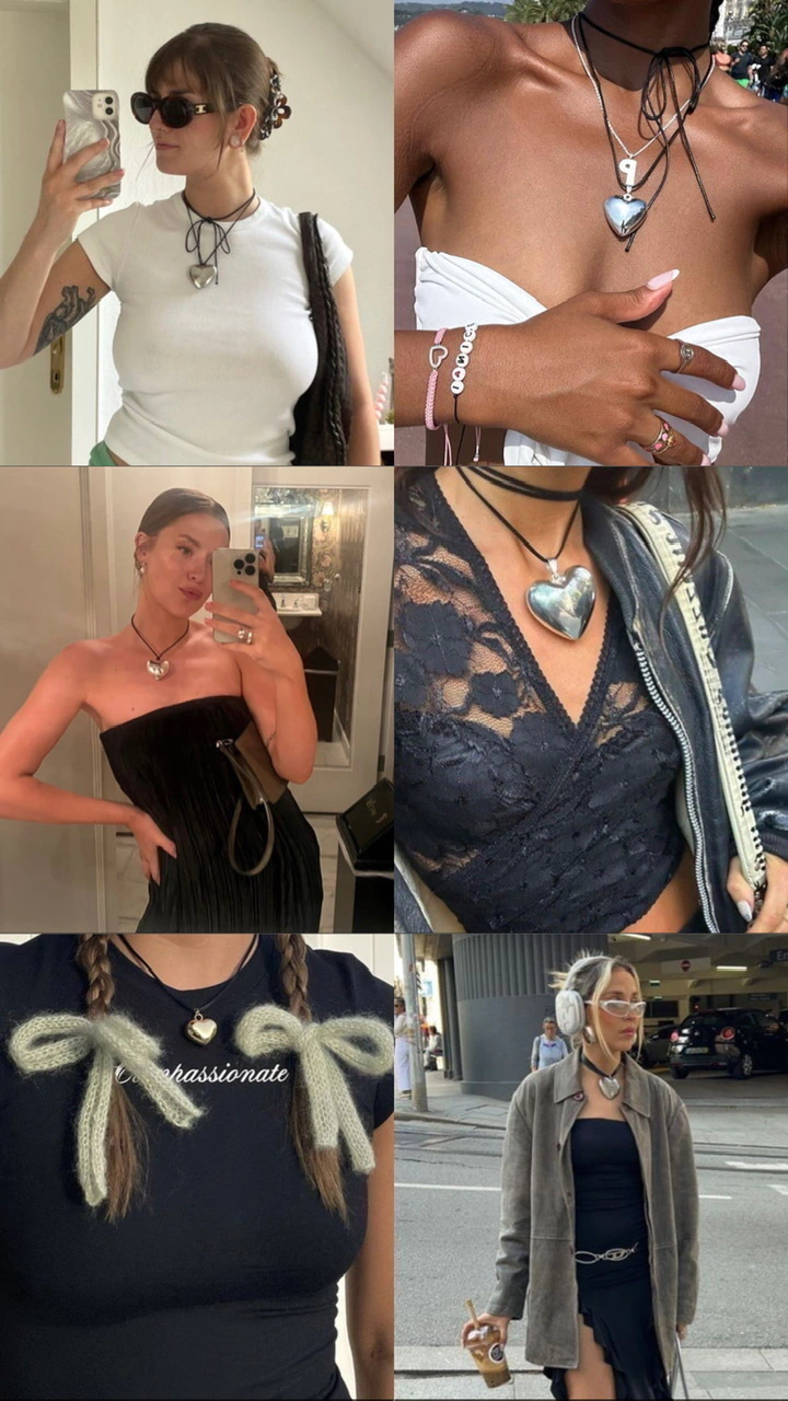 Colar em cadarço de camurça, com 1,50cm de comprimento, pingente de coração prateado em Zamac com banho de verniz, com 3,5cm. Permite diversas formas de amarrações!